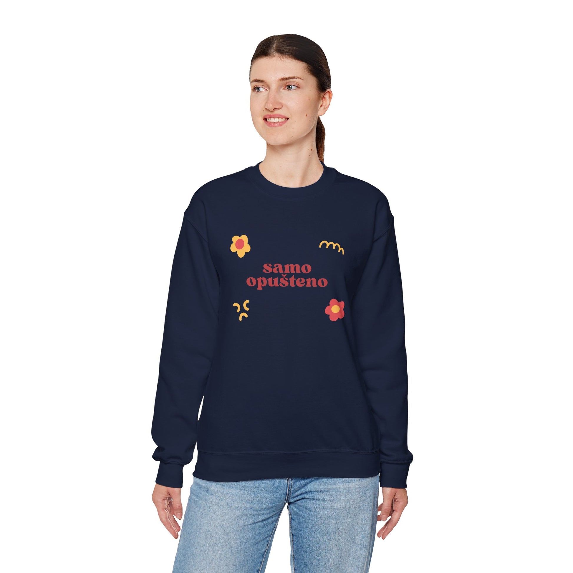 Majica Samo Opušteno DR udobna je, mekana i topla majica dugih ruka. Natpis je podsjetnik da se opustite. Sve će se na kraju riješiti i sve će biti dobro! Samo Opušteno - u dan, u obaveze ili na put. Majicu poklonite prijatelju, dragoj osobi ili članu obitelji i gledajte kako će uživati noseći je. Možete je naručiti u četiri boje. Odgovarajuću veličinu pronađite u tablici.