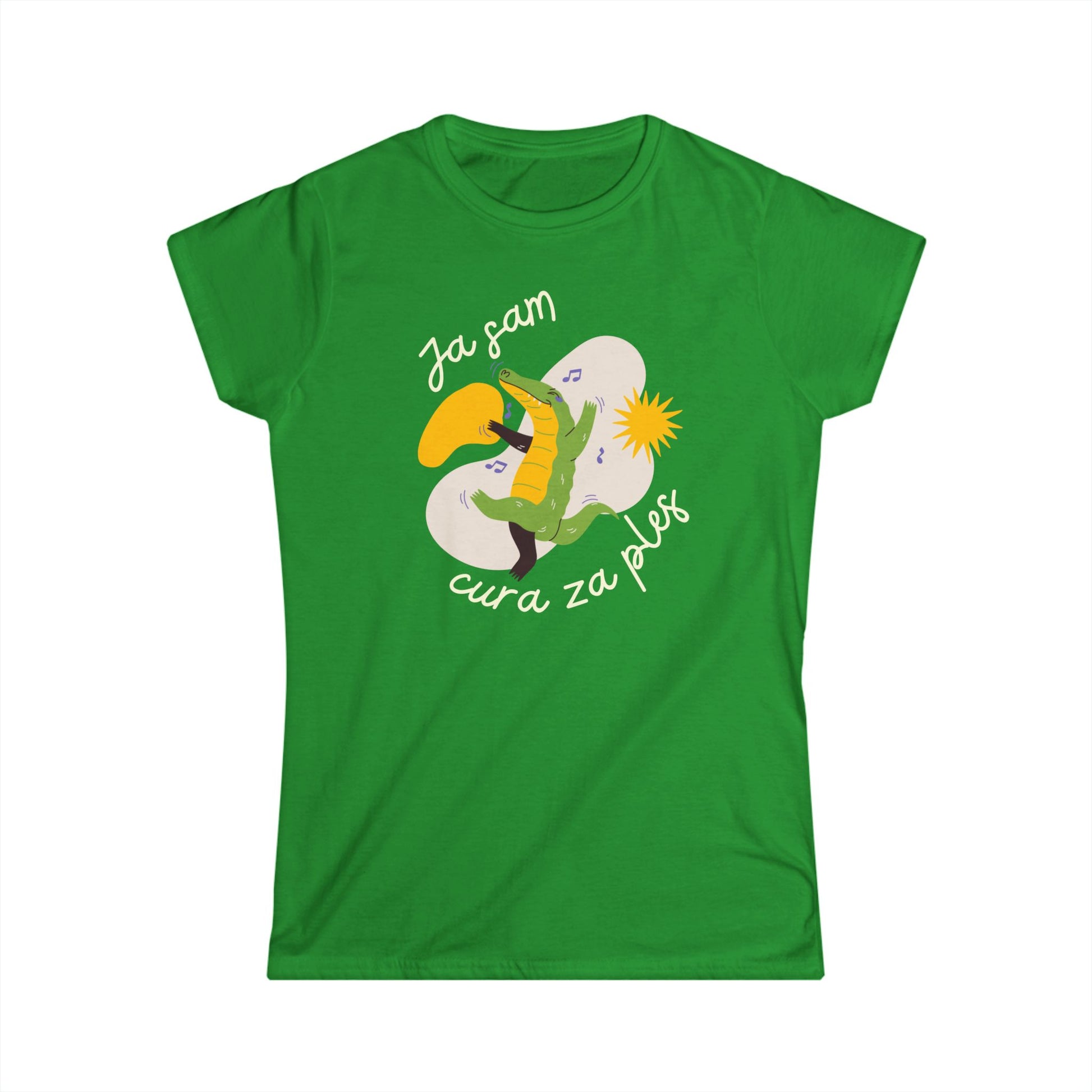 Ženska majica Cura za ples mekana je, kvalitetna i udobna majica kratkih rukava. Zahvaljujući pamučnom sastavu i univerzalnom kroju majica savršeno pristaje svakom obliku ženskog tijela! Moguće ju je naručiti u nekoliko boja. Idealan je odabir za sve cure koje vole plesati! Majica je simpatična i vrckava te će upotpuniti svaku odjevnu kombinaciju! Odgovarajuću veličinu pronađite u tablici.
